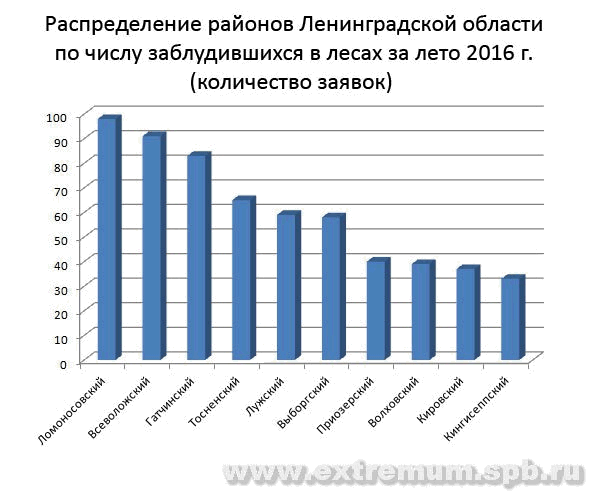 Чаще всего люди терялись в Ломоносовском районе Ленинградской области — 98 заявок. На втором месте, с небольшим отставанием, Всеволожский район — 91 случай. Тройку замыкает Гатчинский — 83 ПСР.