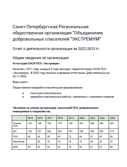 Санкт-Петербургская региональная общественная организация “Объединение добровольных спасателей “ЭКСТРЕМУМ” Отчет о деятельности за 2022-2023 гг.
