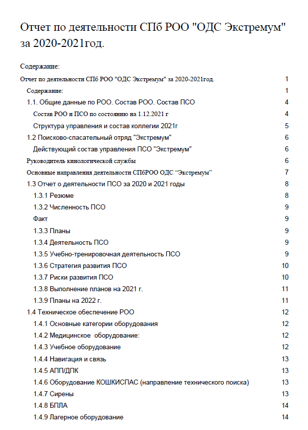 Полный отчет о деятельности "Объединения добровольных спасателей "ЭКСТРЕМУМ" за 2021 год