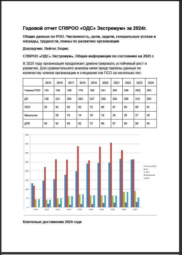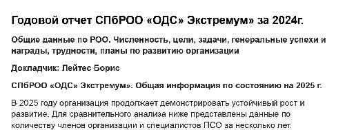 Отчет о деятельности СПб РОО "ОДС Экстремум" за 2024 год