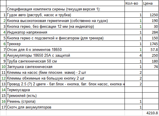 Статья про сборку. Обзорная статья Технологии применения сирен. История применения сирен в спасательных работах. Спецификация сирены Из чего состоит: 1. Собственно гудок: 2. Кнопки 3. Индикатор 4. Треккер 5. Доработаный отсек на 4 элемента 18650. Доработка заключается в установке мощных латунных контактов и нормальных проводов, т.к. ток может достигать 20А