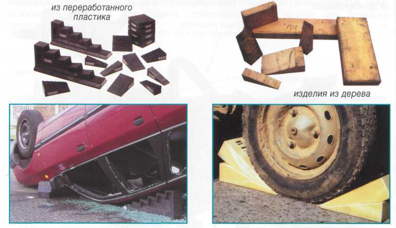 Обеспечить устойчивость автомобиля, как было описано выше. Добавить дополнительные опоры под среднюю стойку В, где будет установлено основание домкрата. Хотя не каждая ситуация это позволит, настоятельно рекомендуем использовать опору домкрата для распределения усилий, действующих в его основании