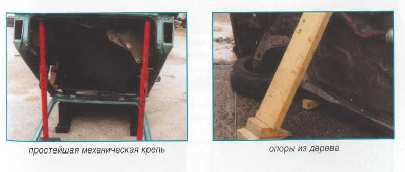 С помощью домкрата создано необходимое свободное рабочее пространство. Страховочные опоры (крепь) теперь необходимо постоянно регулировать, чтобы обеспечивать оптимальную устойчивость автомобиля.