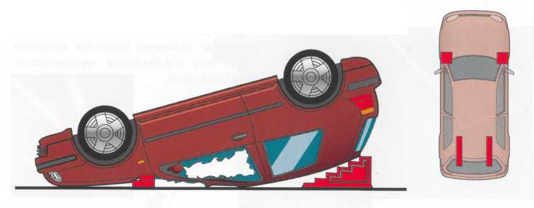 Для создания горизонтальной рабочей платформы следует поставить опорные блоки в тех местах, куда будет положена крыша автомобиля. Медленно и плавно отгибайте крышу автомобиля в направлении вниз, чтобы автомобиль не потерял устойчивости.