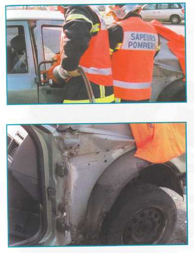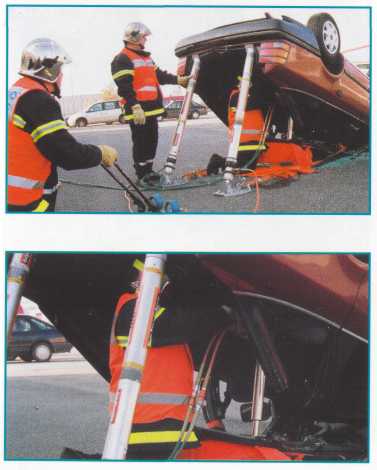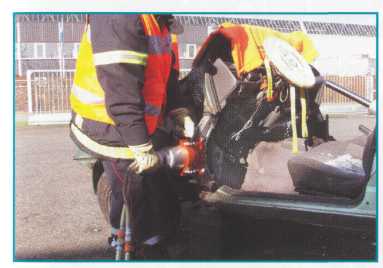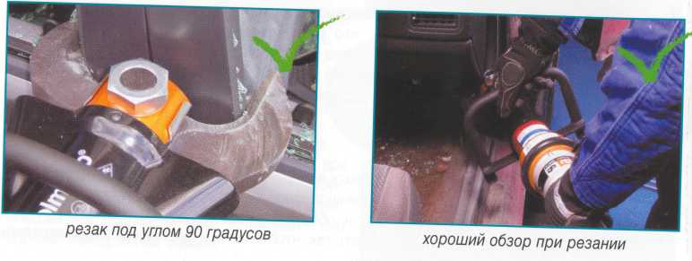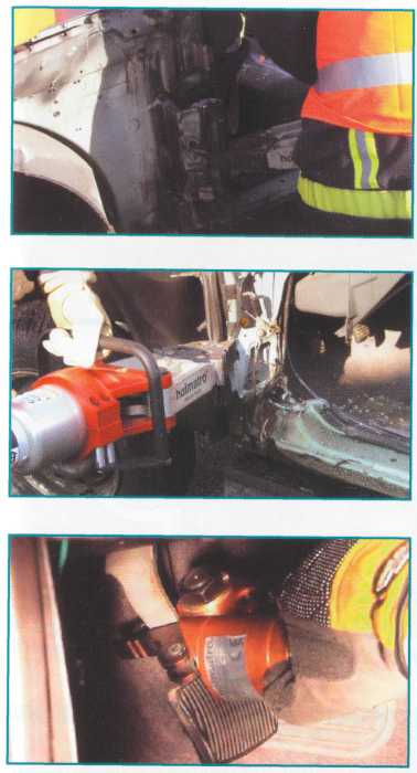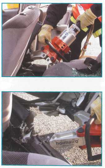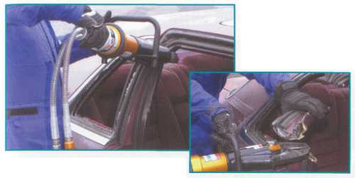 Необходимо уделять особое внимание перемещению резака во время этой операции, так, чтобы он не вошел в контакт с пострадавшим, с креслом автомобиля или с домкратом.