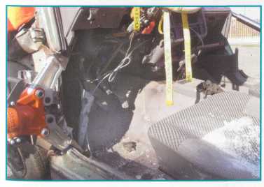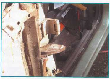 После того, как автомобиль надежно закреплен, необходимо проверить, что переднее крыло автомобиля целиком снято, как описано на стр.58 при операции снятия двери. Потребуется также более глубокий профильный надрез верха колесной арки для использования его в качестве точки перегиба.