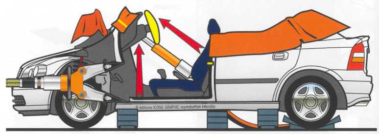 Перемещение приборной панели автомобиля строго вверх, в сторону от пострадавшего.