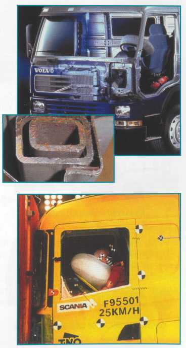 Обрежьте переднюю стойку А кабины грузового автомобиля вверху и ослабьте ее, надрезав стойку А в основании, а также переднюю панель в области приборной доски для независимого отгиба панели вперед.