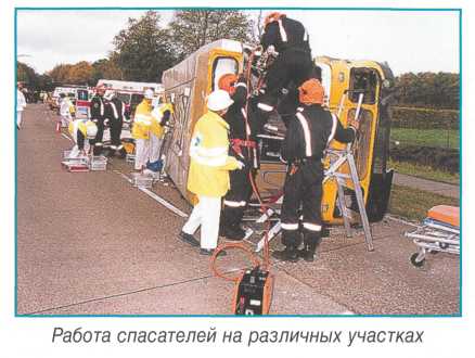 По причине того факта, что большинство автобусных аварий связано со значительным количеством пострадавших, очень важно четко определить роли всех членов Вашей аварийно-спасательной команды по конкретным рабочим зонам. Может быть также необходимо определить и четко обозначить зоны расстановки спасательных транспортных средств с целью обеспечения быстрой и безопасной транспортировки (эвакуации) пассажиров. В некоторых случаях может потребоваться разделение аварийно-спасательных команд на небольшие группы, работающие на разных участках.