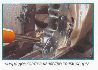 Теперь, под контролем, можно начать раздвижение домкрата. Необходимо внимательно следить за всеми точками опоры во время этой операции. Не следует забывать о постоянном контроле устойчивости автомобиля, немедленно выполняя все требуемые регулировки. Используйте клиновые блоки в раскрытии профильного надреза.