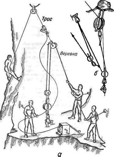 Ежегодно в нашей стране возрастает число сложных восхождений (особенно стенных), в связи с чем возникла необходимость усовершенствовать технику н тактику спасательных и транспортировочных работ. В настоящее время все альпинистские лагеря и контрольно-спасательные пункты страны оснащены специальным спасательным инвентарем (тросовым снаряжением), позволяющим осуществить спуск пострадавшего по отвесной стене или крутому склону этапами до 500 м (без оборудования промежуточного места спуска), соорудить вдоль гребня, через кулуары и каньоны подвесные дороги протяженностью до 300 м и, применяя систему блоков, поднять пострадавшего со значительной глубины