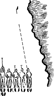 Головной отряд, состоящий, как правило, из 6 человек (3 связки по 2 человека), выходит в следующем порядке: