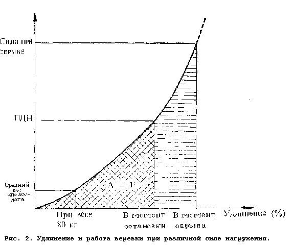 В процессе эксплуатации она постепенно исчерпывает свои эластические способности. Даже после десятка более медленных опусканий на страховочный конец пиковая динамическая нагрузка может значительно увеличиться. Поэтому и при нормальном статическом применении страховочного конца всегда следует работать внимательно, чтобы не подвергать его излишним нагрузкам.