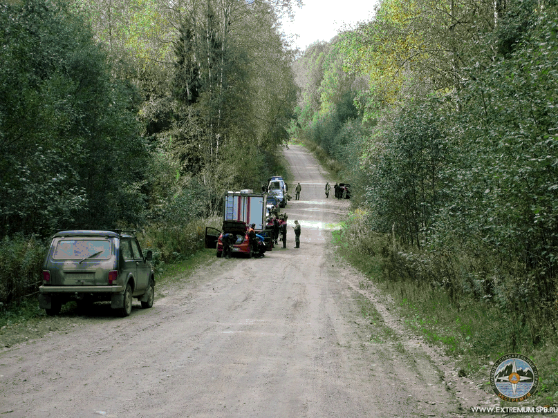 На месте встретились со штатными спасателями, выяснили, где найдены машины, что было сделано штатными спасателями. Они работали на отклик с дороги на северо-восток, заходя в лес по просекам на юго-запад. Штатные работу закончили и уезжают.