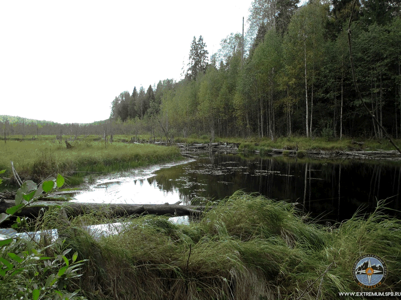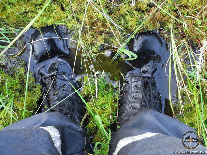 Лишенное ориентиров, но безопасное торфяное болото начинает прогибаться под ногами, вокруг появляются «окна», а совсем небольшой ручеек на болоте оказывается совершенно непроходим, потому что под тонким слоем воды этого ручейка не надежное дно, а метры рыхлого ила.