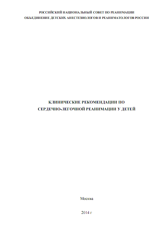 Клинические рекомендации по СЛР у детей 2014. Российский национальный совет по реанимации. Данные Рекомендации согласованы с МЗ РФ.
