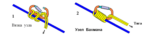 10. Веревка спуска на восьмерке, при обеспечении двухсторонней страховки, может верхним концом пристегивается к карабинной удавке переправы, как веревка ее дистанционного снятия.