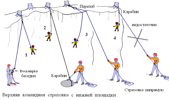 3. Если командная страховка, по каким-либо причинам, не обеспечивает безопасность участников, она должна дублироваться судейской страховкой (верхней, перильной или др.).