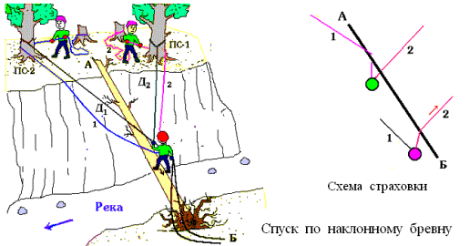 1*. При крутизне переправы более 20О участники обеспечиваются верхней судейской страховкой.