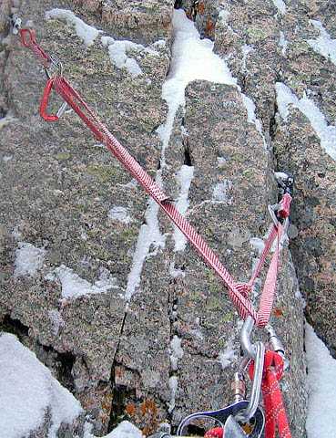 ·Вы уверены, что направление тяги будет таким как надо? Не слишком ли большая нагрузка может быть приложена к этому пункту? Вы делаете станцию для спуска или для страховки при подъеме?
