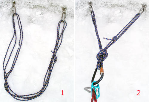 Во многих ситуациях, для построения станции достаточно двух надежных точек - два прочных крюка, ледобура, анкера, и т.д. Есть множество способов сблокировать эти две точки.