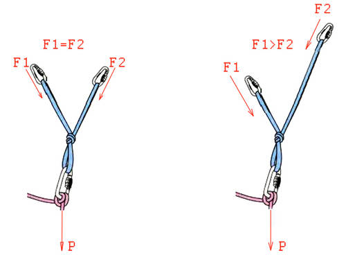 - Нет, корделетт с небольшими углами между ветвями, имеющими примерно равную длину – надежная система, пользуйтесь на здоровье. Просто, если жизнь подложила вам свинью в виде единственной вертикальной трещины, где надо организовать страховку, этот способ будет работать хуже из-за разной длины петель.