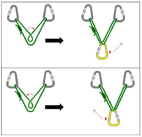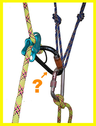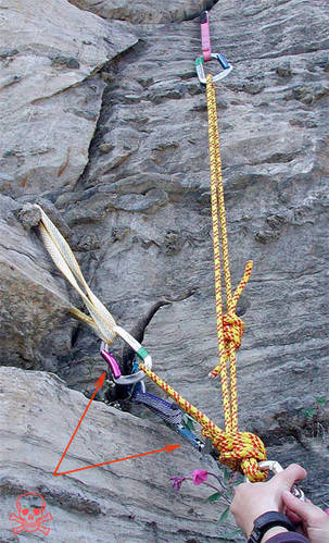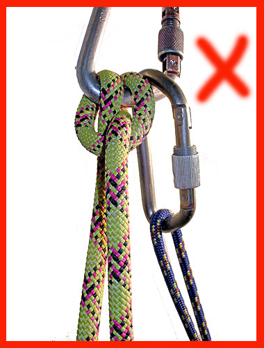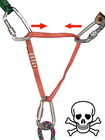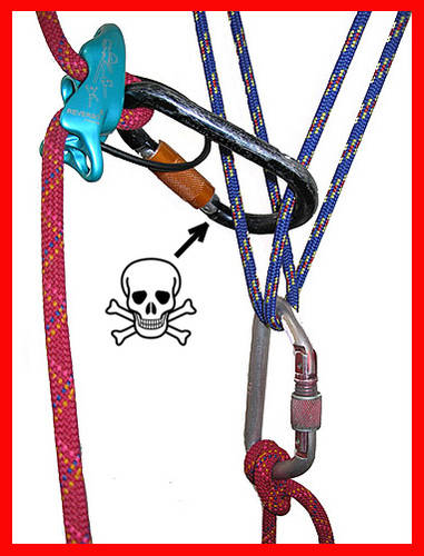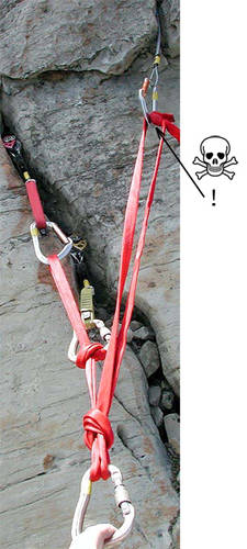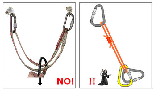 Рис. 75. Неправильное присоединение страховки и самостраховки в компенсационную петлю.