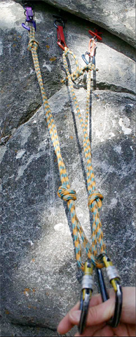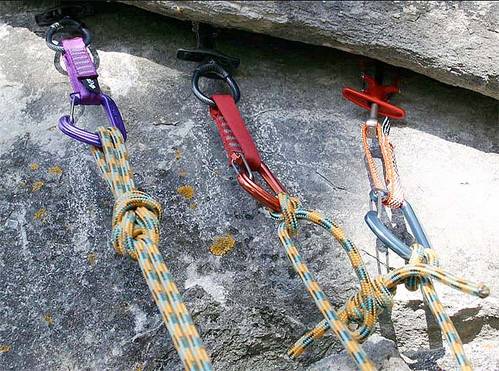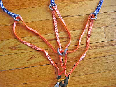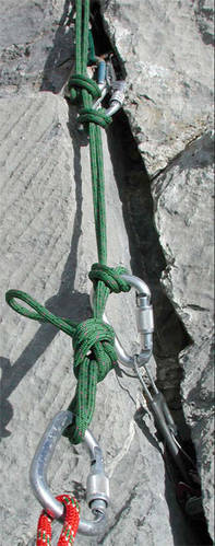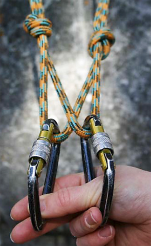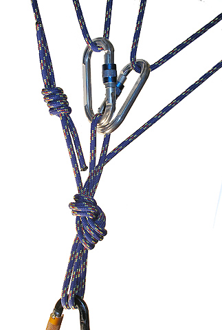 Часто длина петли оказывается слишком мала и, чтобы организовать хорошую точку страховки, нужно соединить вместе несколько коротких петель. Использование узлов в этом случае не всегда оправдано.