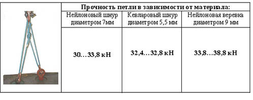 Даже удлинение без узла снижает общую прочность на 40%. Общая прочность такого соединения, в среднем – 15,8 кН. (прочность нейлоновой петли – 25,5 кН) [5].