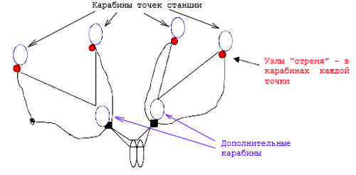 2. 22:19 30.03.2009 Варианты организации станции страховки ©. Часть 3. Станции на трех и более точках.