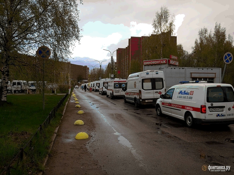 Посмотрите на фотографию. Таких фотографий было много в сети – для нас это особенная: это НАША очередь. Больница (на снимке – это правый корпус) была полностью освобождена от пациентов и в день, когда главный врач отрапортовал задыхающемуся городу о готовности принять 350 пациентов, пациентов привезли. А теперь напрягите фантазию – в каждой из этих машин человек. Молодой или чаще старый, еще компенсированный или чаще задыхающийся, всегда испуганный.