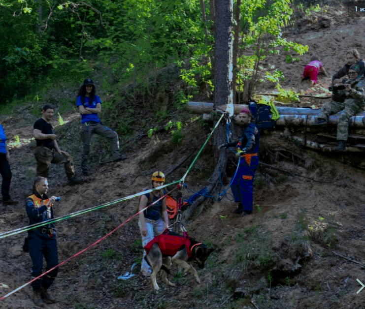 На тренировках нам показывали, как переправляют собак через реку с помощью специального снаряжения. Так как шлейки с подходящим размером для Кокса не оказалось, нашу собаку лишили такого удовольствия. Зато многие наши четвероногие коллеги были переправлены на противоположный берег, подвешенные на специальной шлейке.