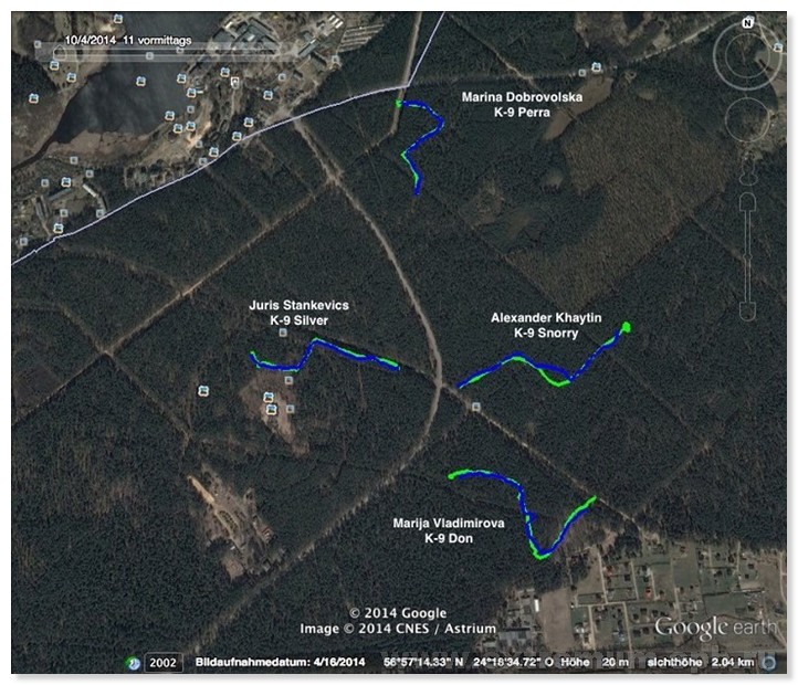 Длина пройденного в ходе тестирования следа около 600 м., возраст следа около часа. Контрольное время 15 минут.