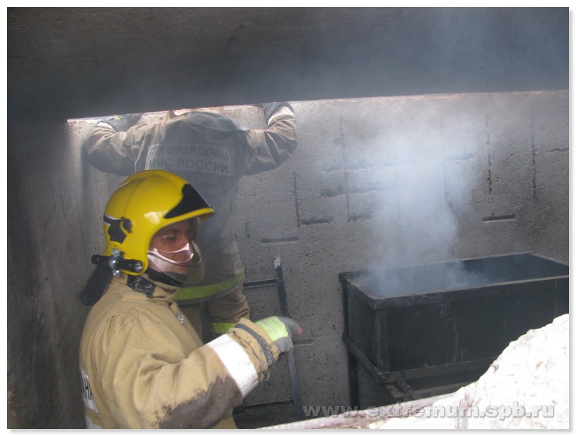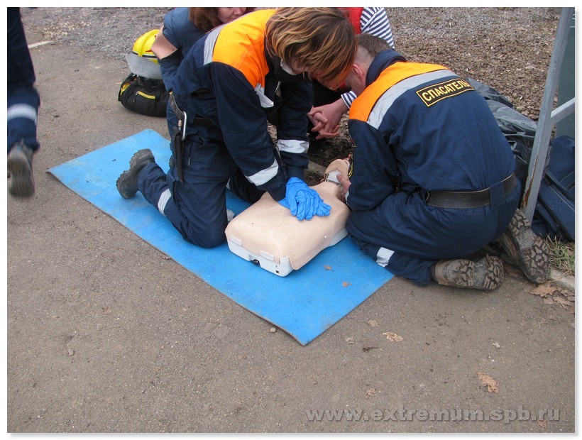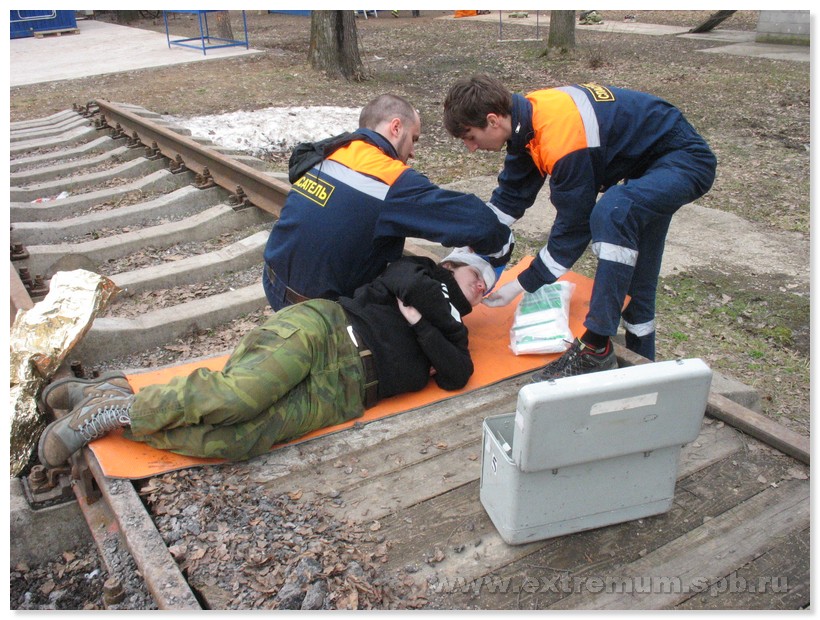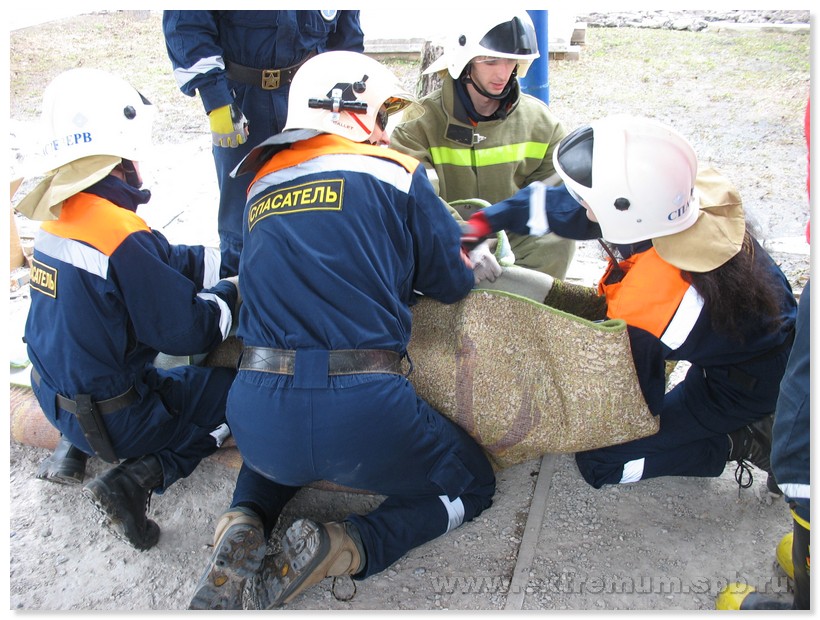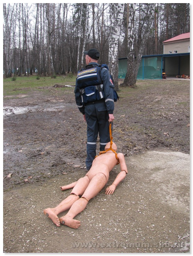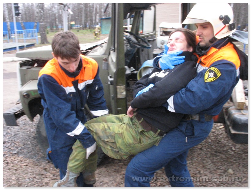 Помучившись какое-то время с никак не желавшим запускаться бензорезом, срезали замок и вошли, выломав хулиганом деревянный брус-щеколду. Дальше началось шоу. На полу - ковер, на ковре - тело весьма приличных габаритов (как нам сказали потом, реальный прототип этого героя был гораздо больше), на первый взгляд - без сознания. Подошли, начали осматривать, и тут он начал брыкаться, орать, пинаться, хвататься за предметы окружающей обстановки и вообще всячески нам сопротивляться. Все оставшееся время мы весело и дружно вшестером пытались вытащить это то брыкающееся, то затихающее тело из квартиры для погрузки в скорую, закатав его в тот самый ковер.Наши действия как спасателей в данной сцене, как нам показалось, были прямым нарушением 2 статей УК РФ как минимум. Тем не менее, нам этот этап очень понравился своей неожиданностью и отличным отыгрышем инструкторов. Было весело!