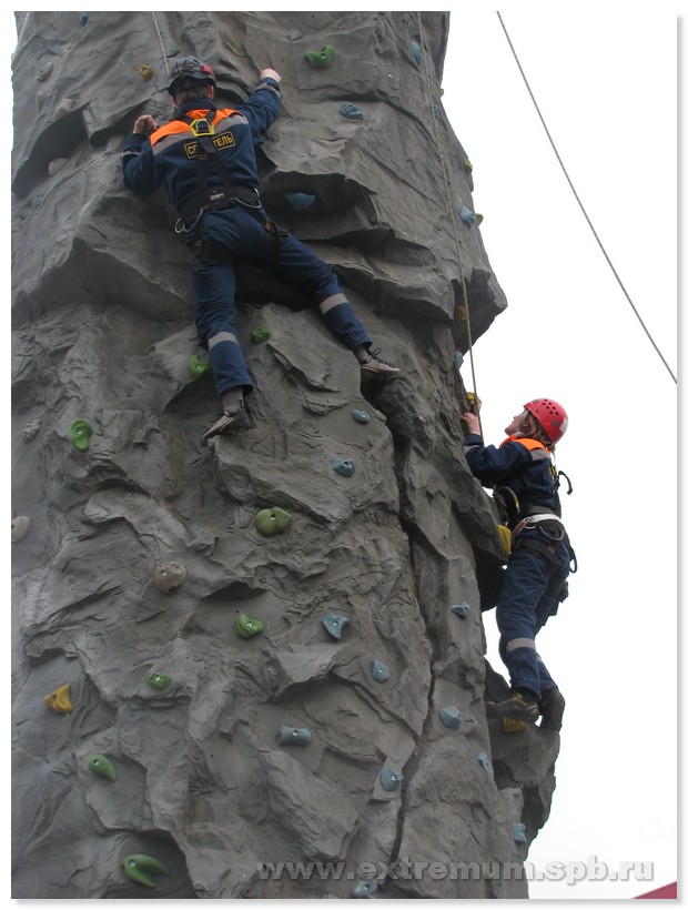 Тут все понятно из названия. Задача - залезть на самый верх, количество участников - по желанию, кто хочет размяться. Справились почти все (т.е. все те, кто хоть как-то пробовал лазать до этого), стенка не сложная, угол - в основном вертикаль, зацепов достаточно много.