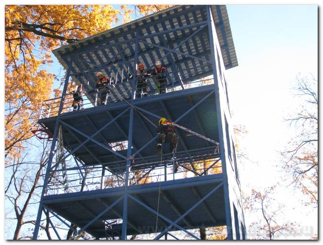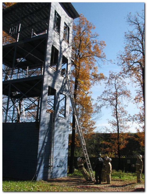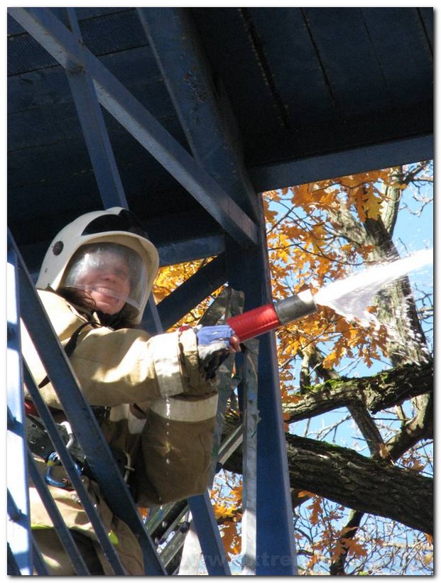 Развертывание линии на третий этаж пожарной башни с помощью трёхколенки и штурмовки и тушение условного пожара.