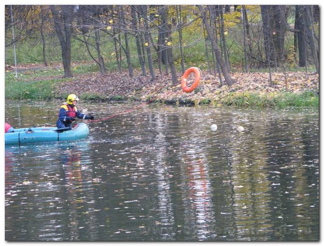 Двое пострадавших плавают в воде, необходимо доплыть на резиновых лодках до них, втянуть в лодку и доставить на берег, потом сплавать ещё раз и бросить конец Александрова и спасательный круг на точность.
