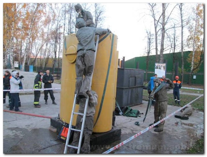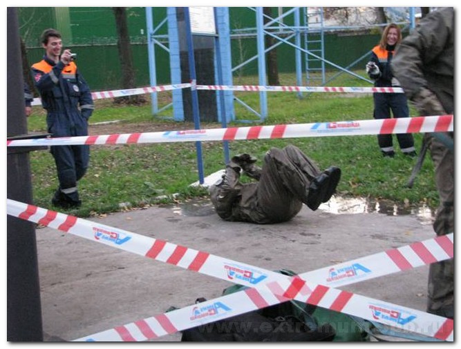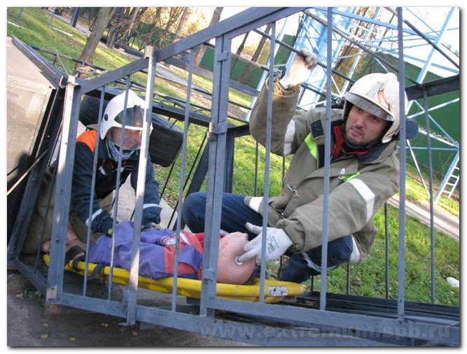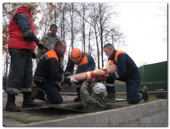 Только что обрушилось здание, под завалами зажало человека, необходимо извлечь пострадавшего из завала с помощью гидравлики и оказать ПП. Довольно тяжело было протаскивать снаряжение через узкие лазы завала. В качестве усложнения нам подожгли бочок с бензином- затушили предусмотрительно взятым с собой огнетушителем .