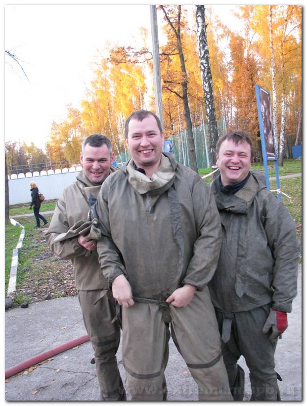 Здесь участвовала сборная команда желающих из 1-й и 2-й команды. Этап достался нам бонусом. Задача пройти к цистерне и заделать течь, вытащить пострадавшего. Этап был одним из самых веселых «со стороны» т.к. все участники были облачены в костюмы химзащиты, он был под закрытие всех остальных этапов и настроение было уже у всех довольно расслабленное.