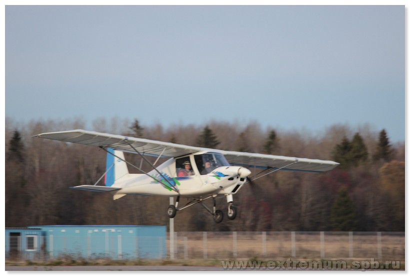 1. Взлет сверхлегкого самолета «Ikarus-22» с экипажем Колбасов (КВС), Сафина (летчик-наблюдатель). (Фото: Ольга Полино, Vzletim.ru)