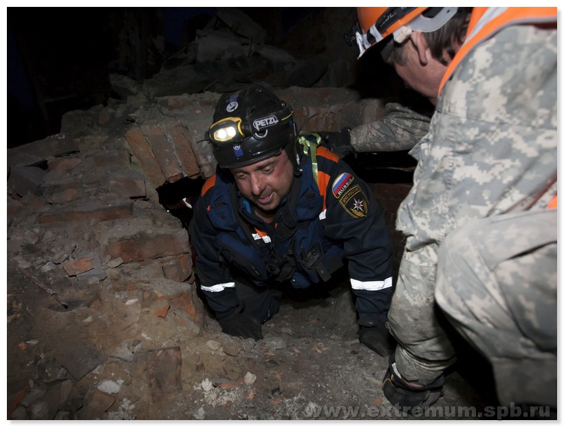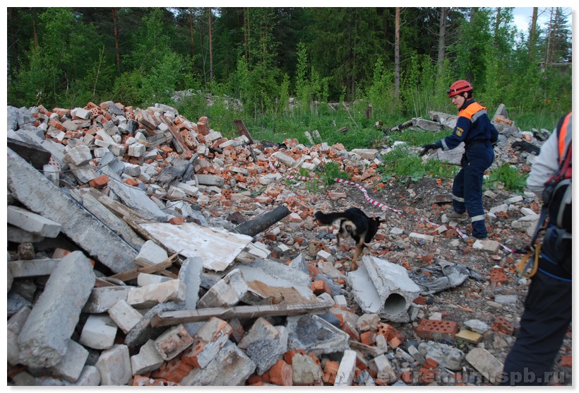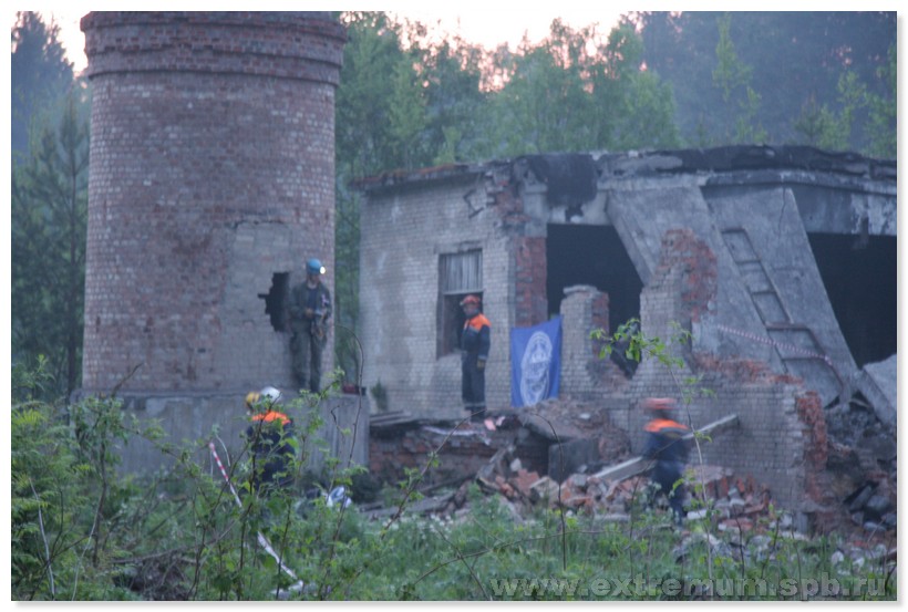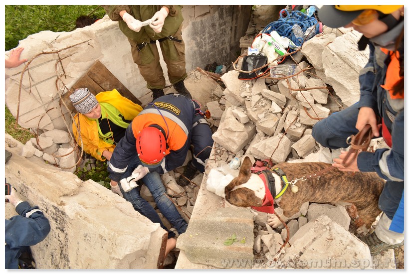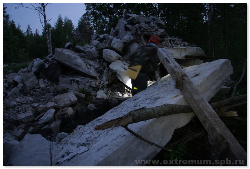 Мы на нем были уже в темноте, собаки, которые до этого с утра бегали с нами везде и пару раз применялись (одна впустую), были уже изрядно охреневшими, но тем не менее включились и хорошо отработали, что очень лично меня порадовало. Ну и в целом этап был новый и интересный. Показалось маловато времени, пока мы шли на этап с базы, прошло не меньше минут 15ти, на работу и, главное, грамотную эвакуацию осталось не так много. Сделала выводы насчет важности грамотной организации связи в условиях возможного ее отсутствия. Хотя сразу скажу, что ситуация, когда спасатели работают на обрушении, а рядом еще не стоит машина скорой (ее надо вызывать) кажется мне несколько нереальной.