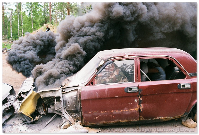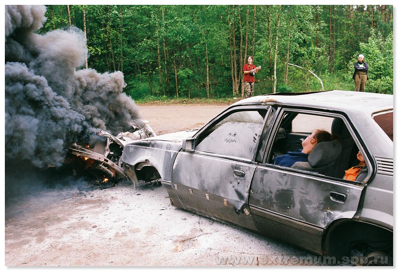 Рядом с машиной горел бензин. Фантаст потушил его подручными средствами (бутылка и песок), дав нам время на спокойную эвакуацию.