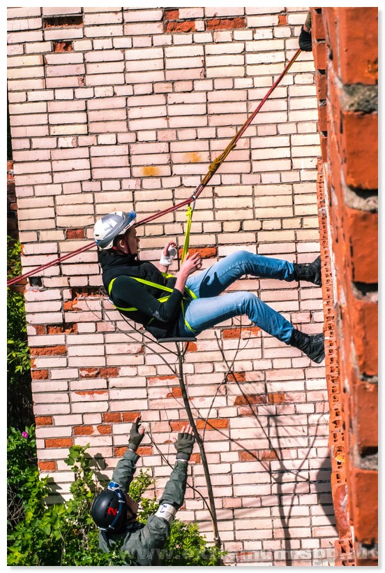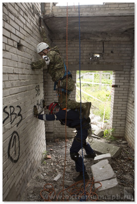 "По первоначальным вводным ожидали что-то типа "подземной бочки" с прошлого года. В реале было разнообразнее и интереснее. Работали совместно с "Приключенцами", очень понравилась как синхронная работа наших высотников, так и дальнейшая работа по разведке-поиску пострадавших в здании. У нас было усложнение в виде кинологов в командах, это потребовало подъема-спуска двух собак и сопутствующей подготовки". Сергей Мартынов, команда "Колоброды"