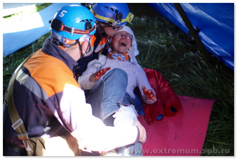 "Суть этапа была в большей степени не медицинского, а экстренного характера, т.е. скорее экстренная эвакуация из зоны ЧС. Все спасатели были загружены на 100%. Статисты - самоотверженные до грани. Мне было их искренне жалко. Мы всячески старались всем помочь, истратили все теплоиды команды, все одеяла и т.п. в общем у нас больше не было, а то мы бы и еще что-нибудь истратили укрывая их". Борис Лейтес, команда "Ублюдки"