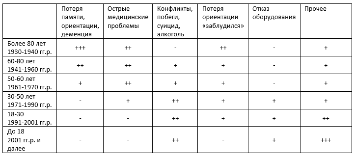 В практическом плане нам важно понимать две классификации: по обстоятельствам и по возрасту. Каждый конкретный случай попадает в пересечение. Чем больше «плюсиков», тем это более частое и обычное сочетание в нашей практике.