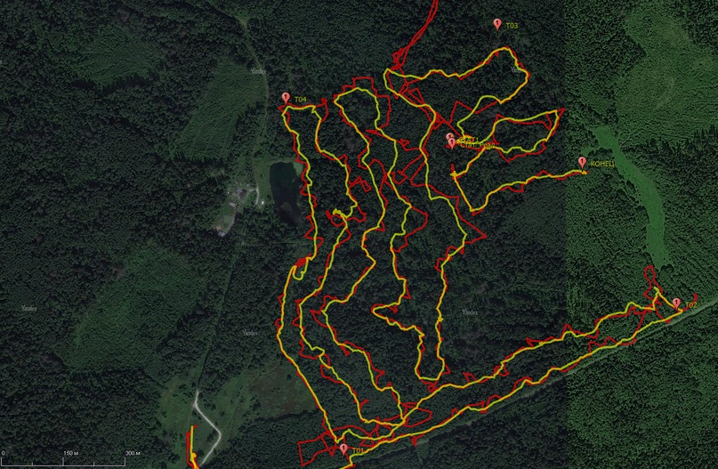 Маршрут группы, точка где был слышен отклик, точка обнаружения