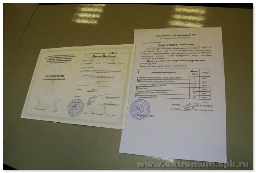В апреле 2016 года, спасатели ПСО "Экстремум" провели обучение по курсу "ПСР в природной среде" будущих профессиональных спасателей. 19 молодых спасателей в течение месяца прошли курс подготовки "спасатель поисковых групп", "старший поисковых групп" и "основы руководства и анализа ПСР". Это первый официальный курс по спасательным работам в природной среде в нашем регионе. Впервые добровольческие спасательные формирования, имеющие огромный опыт по спасательным работам в природной среде, делятся своими знаниями с профессионалами. Обучение проведено силами ПСО "Экстремум" при организационной поддержке "Санкт-Петербургского центра подготовки спасателей" (ПСК).