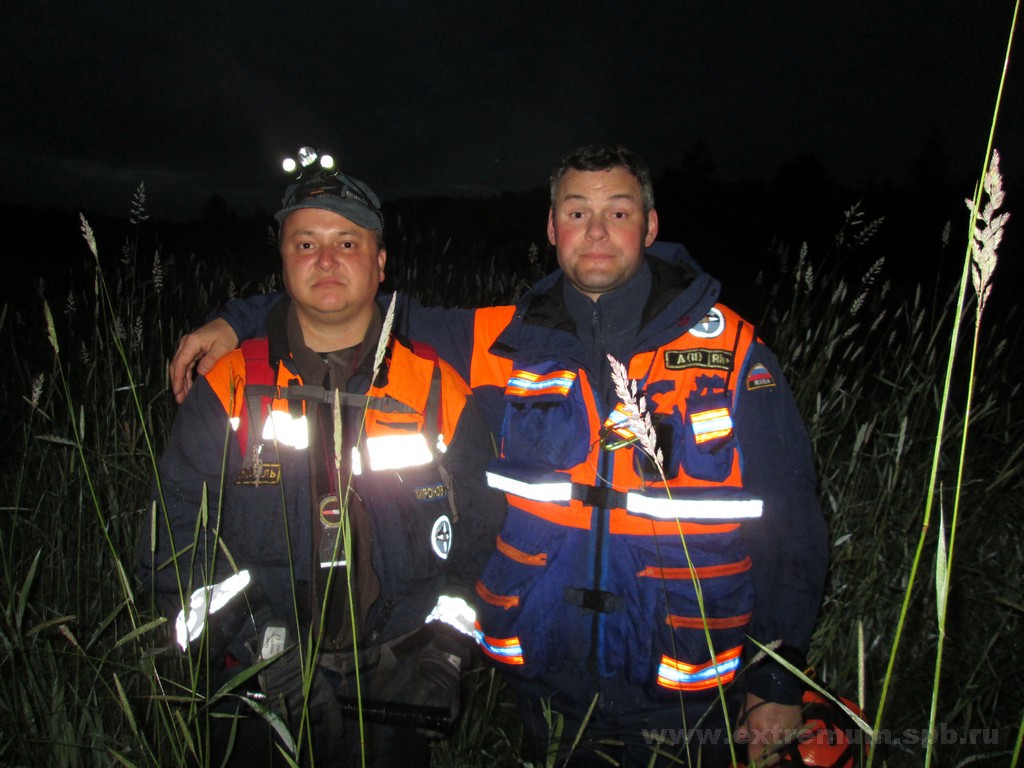 ПСР 575, 13.07, Гатчинский район, платформа 77 км. Мужчина 86 лет, на связи. ПСР начались вечером, так что несмотря на то, что потерявшийся был на связи, выводить его по телефону было нельзя. Связались с родственниками, выяснили обстоятельства, собрали информацию о здоровье. Тут выяснились отягчающие обстоятельства – сниженный слух. Также выяснилось, что у потерявшегося был с собой компас. В этом случае всегда возникает вопрос о том, мог ли потерявшийся перепутать север с югом (это частая ошибка), но нас убедили, что в этом случае такого быть не могло никак. Исходя из собранной информации спланировали работу и выехали. На месте встретились с родственниками, которые показали точку входа на месте. Там же встретились со сменой из Шлиссельбурга. По ходу дела потерявшийся по телефону попросил его не искать, сказал, что теперь уж точно выйдет. Учитывая возраст и то, что одну ночь он уже провел в лесу, решили все же искать. Кроме компаса с собой у потерявшегося был свисток и велосипед, который он героически тащил через лес. Услышали свисток, встретили, вывели. На момент встречи мужчина шел через лес, ориентируясь по солнцу, но направление выбрал не совсем правильно. Кроме того, он был крайне утомлен. Так что съездили не зря. Трудозатраты 28 ч*часов