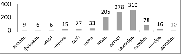 • Активный сезон ПСР длился 3 месяца (июль, август, сентябрь)
