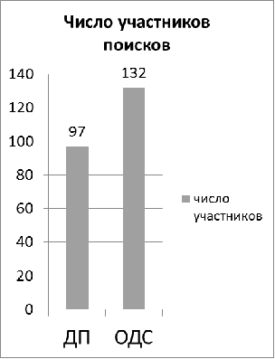 В поисках принимало участие 132 члена объединения добровольных спасателей «Экстремум» (62,26% от всех участников), а также 97 добровольных помощников объединения (31% от всех добровольных помощников).